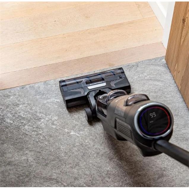 Su motor ciclónico de alto rendimiento y su batería de iones de litio ofrecen una potencia constante durante toda la limpieza, con una autonomía de hasta 45 minutos, ideal para limpiar toda la casa sin interrupciones.
