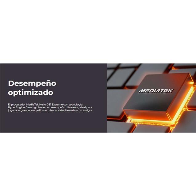 El procesador MediaTek Helio G81 Extreme con tecnología HyperEngine Gaming ofrece un desempeño ultraveloz, ideal para jugar a lo grande, ver películas o hacer videollamadas con amigos.