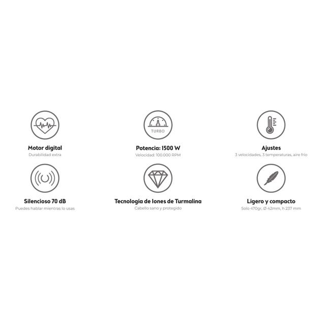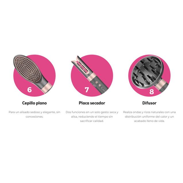 -Placa secador: Dos funciones en un solo gesto: seca y alisa, reduciendo el tiempo sin sacrificar calidad.