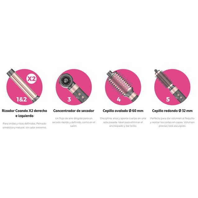 -Rizador Coanda X2 derecho e izquierdo: Para ondas y rizos definidos. Peinado simétrico y natural, sin calor extremo.