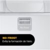 El Sistema No Frost está compuesto por el compresor que enfría y un ventilador que distribuye el aire de forma homogénea en el refrigerador y freezer, a traves de sensores y sistemas de ventilación. No genera escarcha porque la humedad no se condensa y no requiere de descongelado manual.
