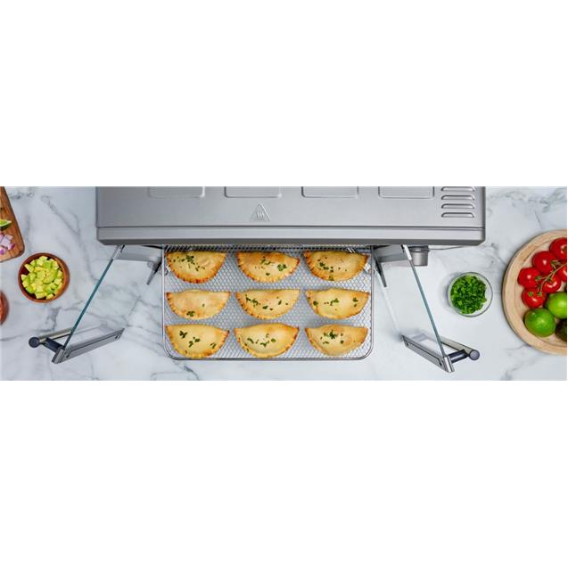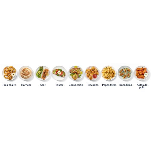 Cocinar en casa se vuelve más práctico con un horno versátil, moderno y fácil de limpiar. El Horno Digital con Freidora de Aire Oster de 42 L tiene un panel digital intuitivo que facilita el control, y un interior antiadherente que evita que los alimentos se peguen, haciendo la limpieza mucho más sencilla. Ofrece 9 maneras de cocinar: freír al aire, hornear, asar, tostar, convección, más 4 programas automáticos para freír al aire papas fritas, pescado, bocadillos y alitas de pollo, en un solo horno práctico para cualquier comida. Su capacidad para hasta 6 rebanadas de pan o un pollo entero de hasta 2,2 kg permite preparar recetas deliciosas. Cocina 2 veces más rápido gracias a su menor tiempo de precalentamiento, perfecto para tener todo listo sin esperar tanto. La función Freír al Aire logra una textura crujiente con 99.5% menos aceite, una manera más saludable de disfrutar las comidas. Cuenta con luz interior para supervisar fácilmente los alimentos, y puertas estilo francés que permiten un acceso cómodo sin ocupar espacio extra en la cocina. Incluye 1 rejilla para hornear, 1 bandeja para migas, 1 bandeja de malla para freír al aire y 1 bandeja para hornear con recubrimiento Oster DiamondForce, que no se agrieta, pela, astilla o descascara y es 15 veces más fácil de limpiar.