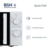 Perfecto para estudiantes, familias pequeñas o para sumar rapidez en tu rutina diaria, el microondas BGH es tu aliado para preparar platos de manera eficiente y segura.