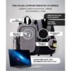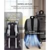 Su puerto USB integrado te permite cargar tus dispositivos mientras te movés, y su cierre con candado de seguridad mantiene todo protegido. Además, sus correas acolchonadas con sistema de amortiguación garantizan el máximo confort, incluso en largas jornadas.