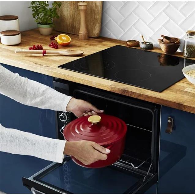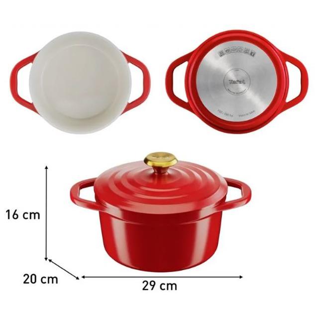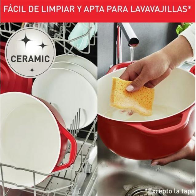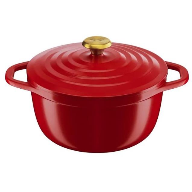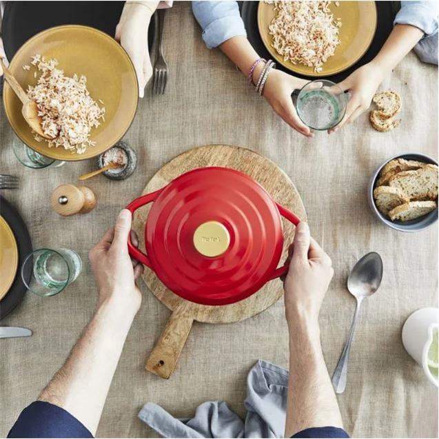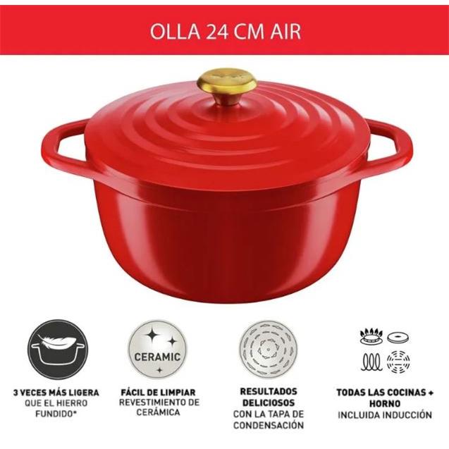 Compatible con todas las fuentes de calor (gas, eléctrica, vitrocerámica e inducción) y apta para horno hasta 250 °C, esta olla se adapta a todas tus recetas. Además, su color rojo intenso “Air Red” y su diseño moderno la convierten en una pieza decorativa que podés llevar directo a la mesa.