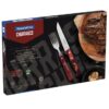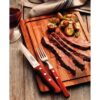 El set Tramontina 12 piezas modelo 21198/776 es un conjunto de cubiertos jumbo para asado que combina funcionalidad y estilo con mangos de madera tratada Polywood, elegidos por su resistencia a impactos, humedad y altas temperaturas. Incluye 6 cuchillos jumbo tipo steak y 6 tenedores, todos con hojas de acero inoxidable pulidas tipo espejo, tratados térmicamente para garantizar filo duradero y rendimiento profesional. Los cubiertos vienen con remaches de aleación sólida que refuerzan su estructura y aseguran una manipulación segura y cómoda