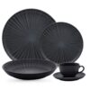 Set de Vajilla Oxford Flat Onix, de 30 piezas. Este conjunto incluye 6 platos playos de 26 cm, 6 platos hondos de 20,5 cm, 6 platos de postre de 20 cm, 6 tazas de té de 200 ml y 6 platillos de té de 14 cm. Fabricado en cerámica decorada, presenta un elegante acabado acetinado en color negro, inspirado en la piedra ónix, y es apto para lavavajillas y microondas. Diseñado para seis comensales, combina funcionalidad y sofisticación, siendo una excelente elección para embellecer la mesa en cualquier ocasión.